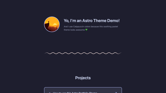 A beautifully minimal, accessible blog theme for Astro, featuring the elegant Catppuccin color palette. This theme comes pre-configured with example content featuring "Max Bytefield" - a fun developer character perfect for showcasing what a developer portfolio could look like.