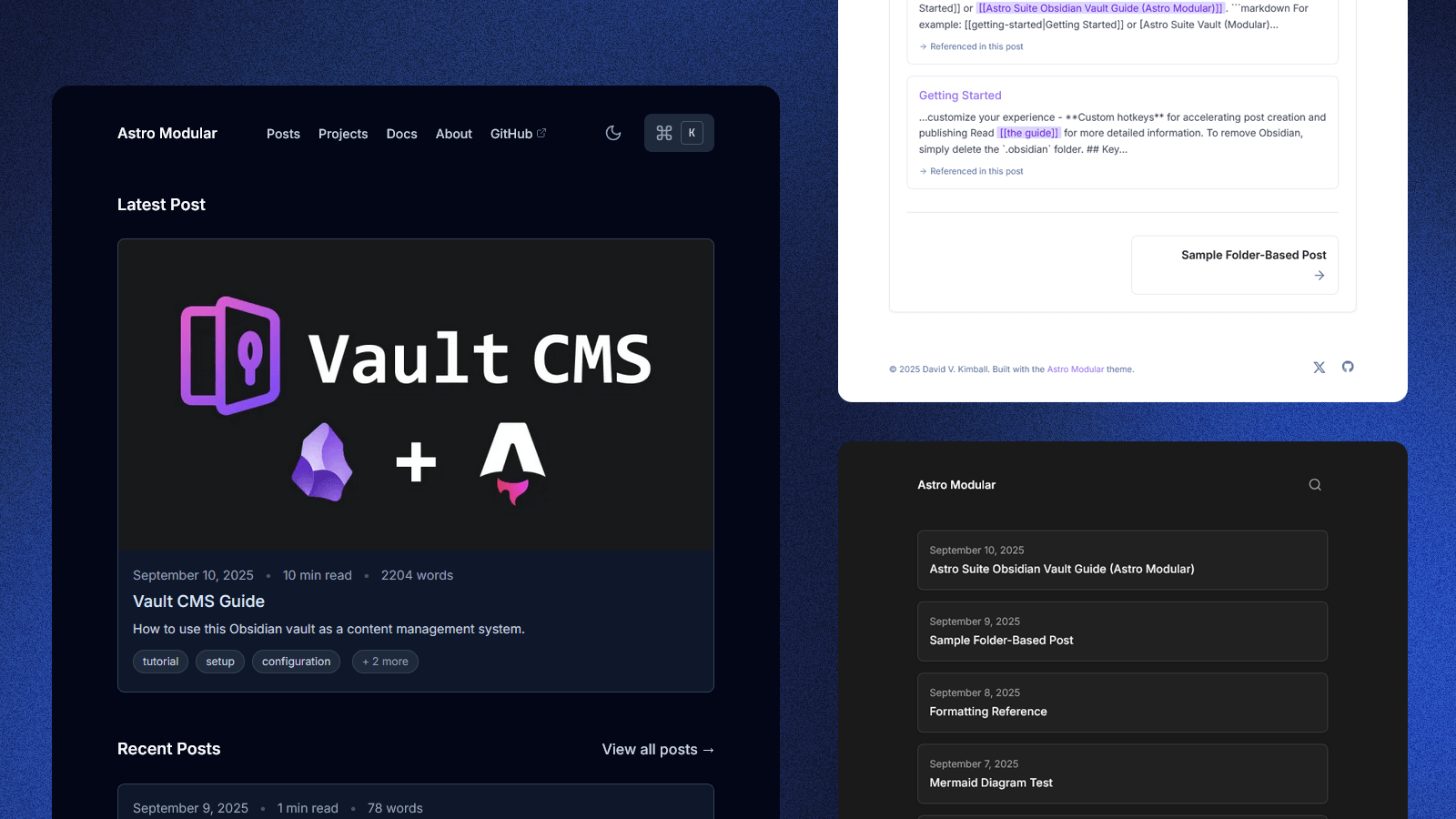 - SEO-Ready: Automatic sitemap, RSS feed, and Open Graph image generation