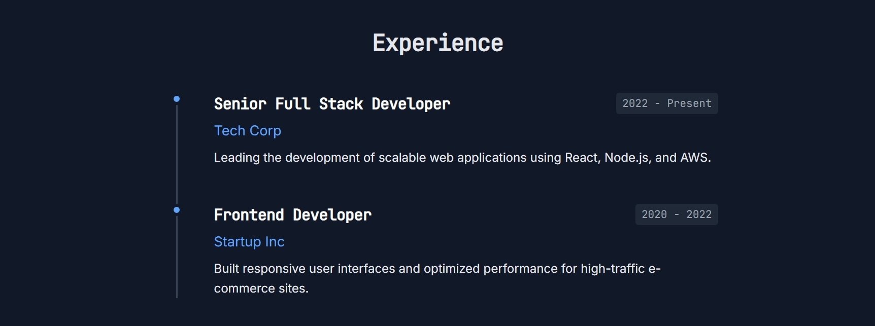- Software Developers: Showcase your GitHub repositories, tech stack, and work experience in a clean, readable format.