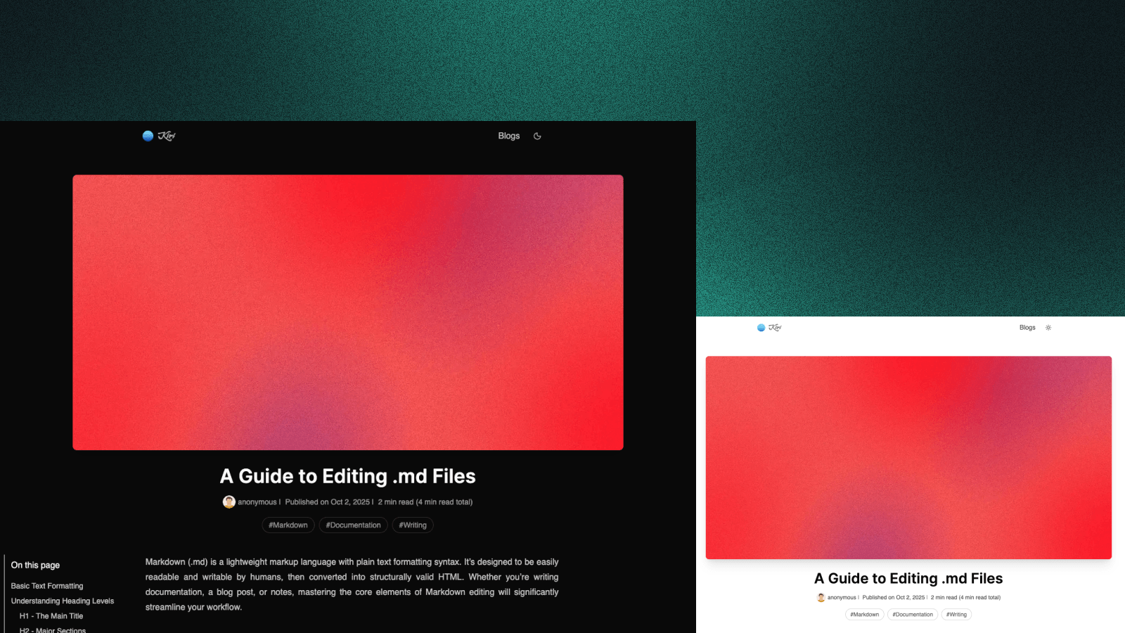 Kiri is a minimalistic blogging space built with Tailwind CSS, designed to be fast, lightweight, and accessible. It offers light and dark themes, clean typography, and modern blog essentials, giving writers and developers a distraction-free, customizable, and open-source platform thatβs ready to deploy as their personal space on the web.
