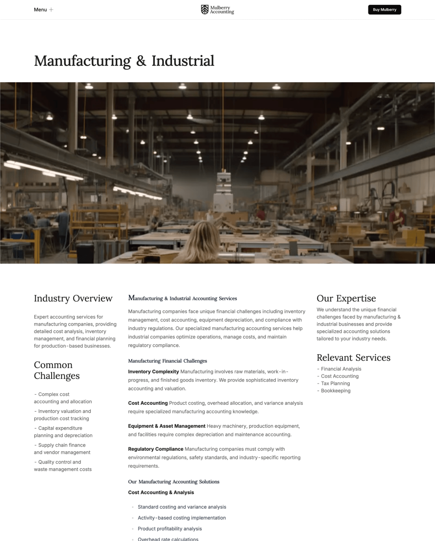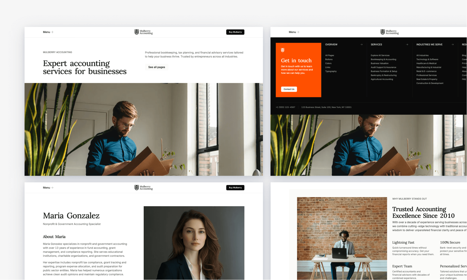 Mulberry is a modern website template made for accounting firms, tax advisors, and financial consultants. Built with Astro and Tailwind CSS, it’s fast, simple to use, and easy to customize.