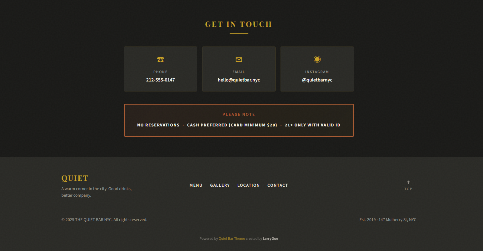🥂 Quiet Bar Theme: The Performance-First Template for Bars & Restaurants