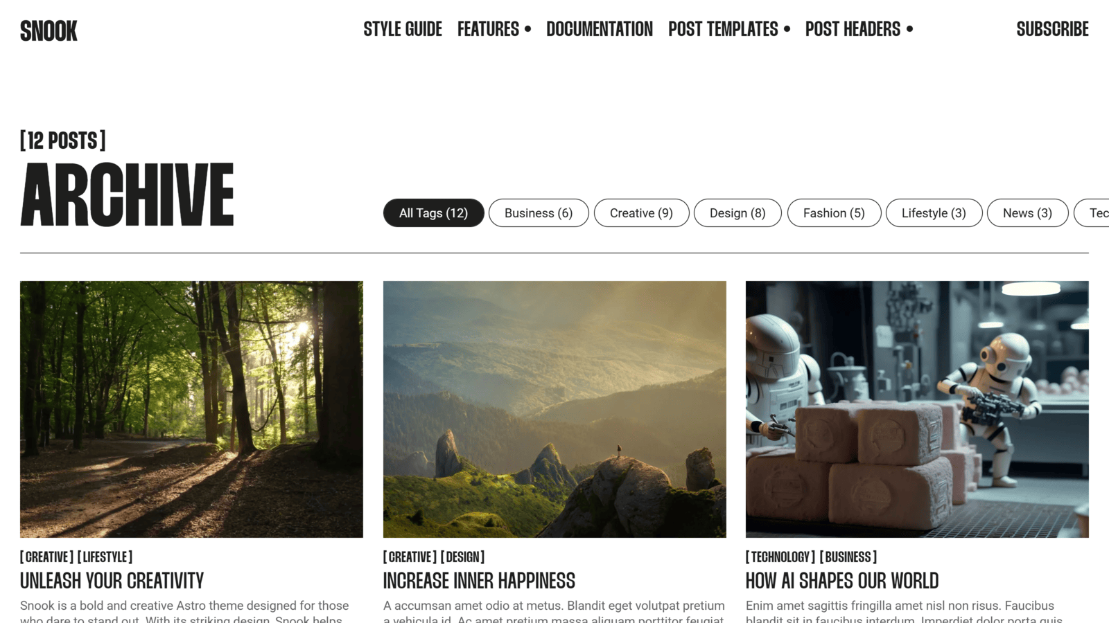 You are granted the right to use the Snook theme for both personal and commercial projects. You may modify the theme to meet the specific needs of your project. The theme license permits unlimited usage, allowing you to use the theme on as many websites or projects as needed, without any limitations. Redistribution, reselling, or sublicensing the theme is strictly prohibited.